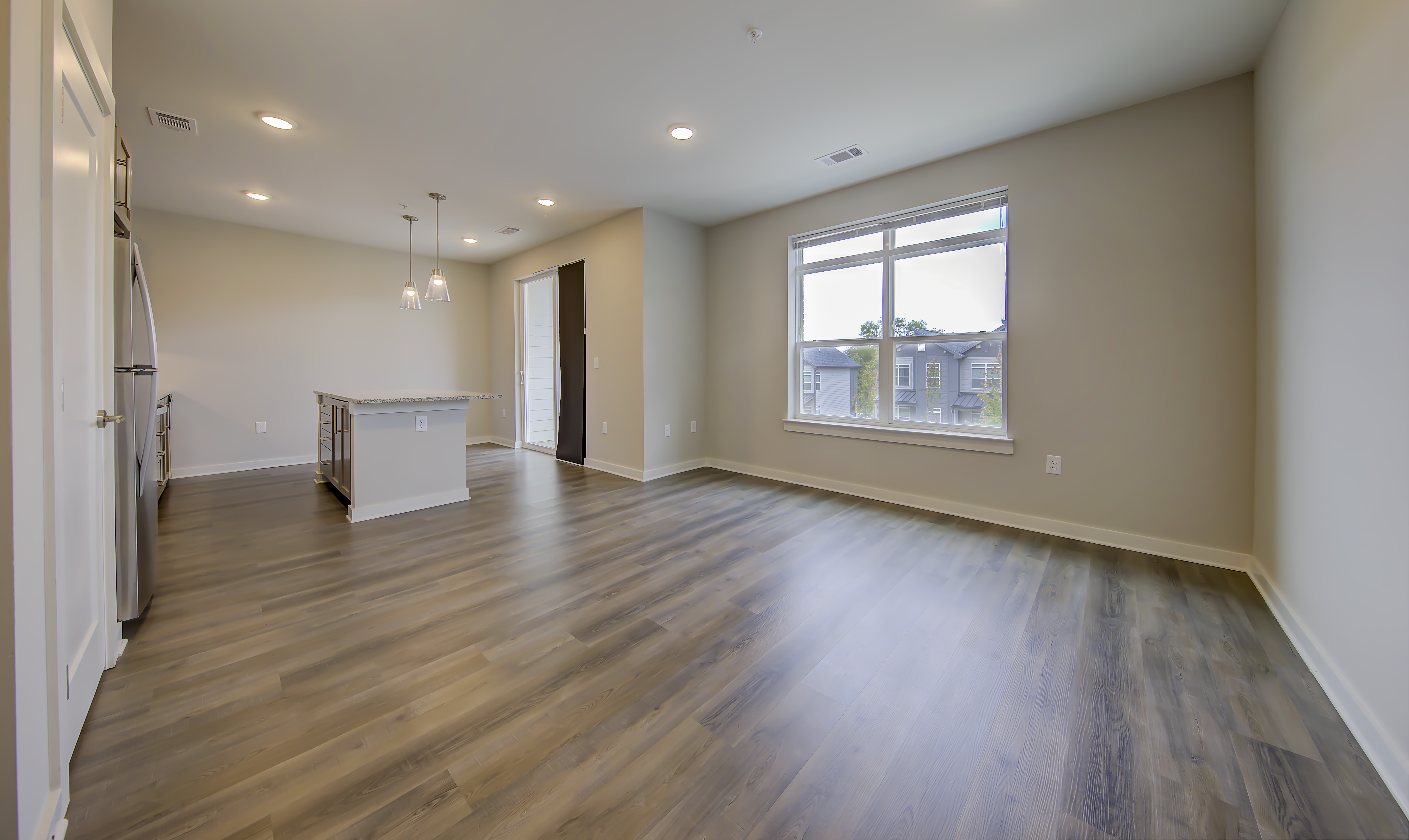 - Open-concept studio layout with wood-style plank flooring and modern finishes